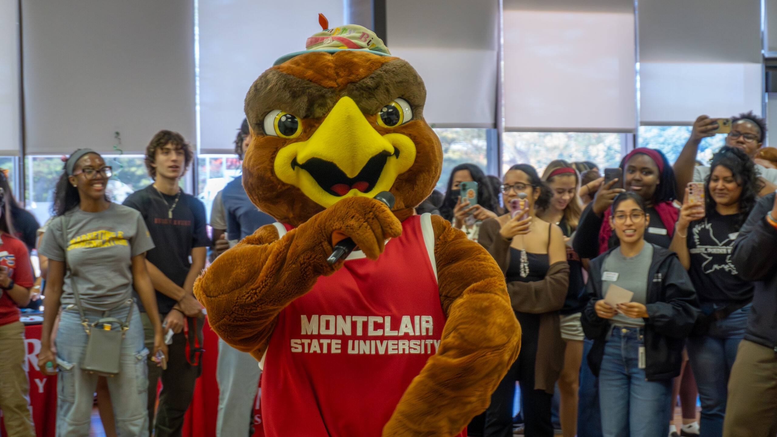 This year, in collaboration with Montclair State’s IT department, Rocky played a part in a phishing scam awareness campaign. Rocky was suddenly abducted by aliens after falling for a free birdseed ad online. Aliens were spotted all around campus and took over Rocky’s Instagram page. Rocky disappeared for about a week before promptly returning to celebrate his birthday with his fellow Red Hawks.