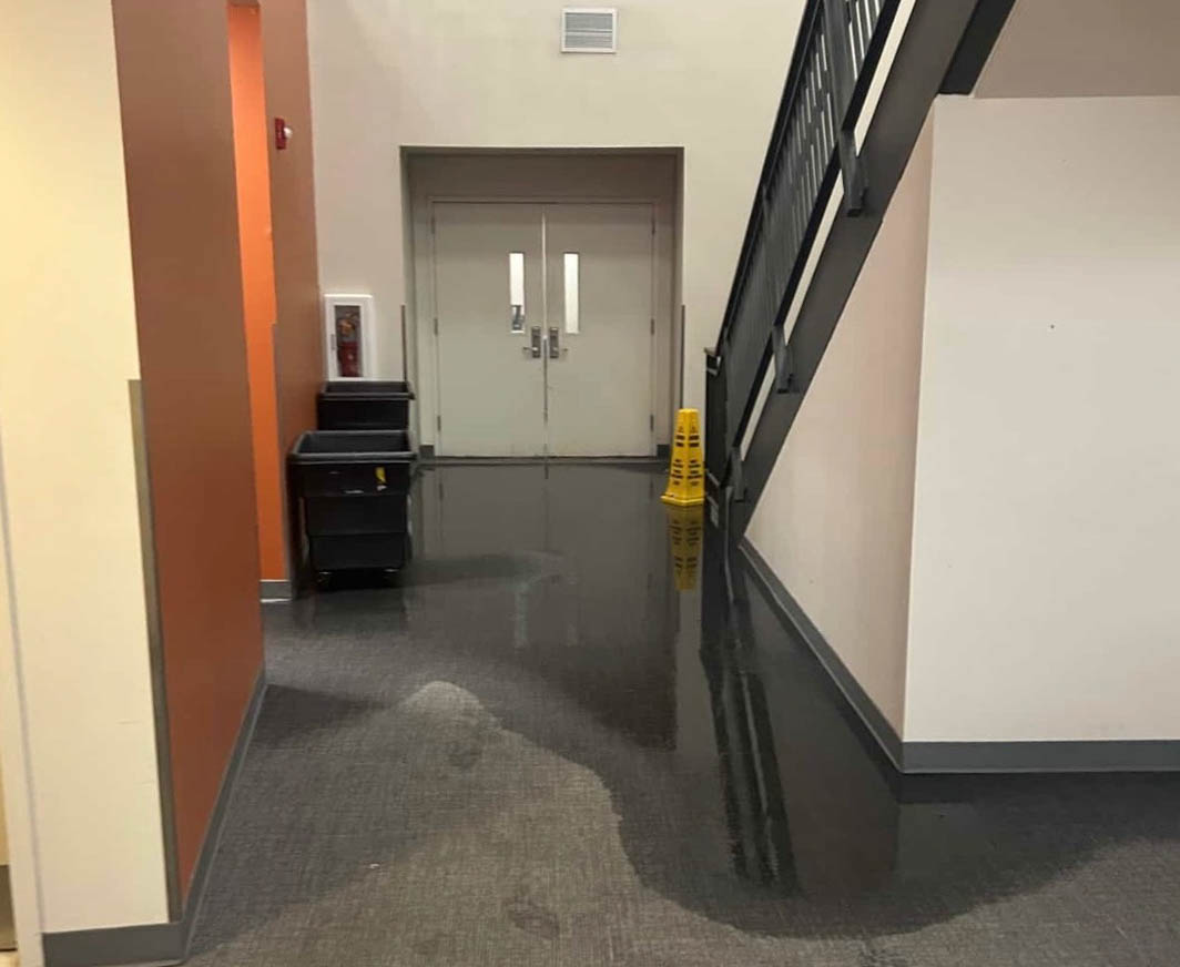 According to a late statement emailed from Thea E. Dyer, the Associate Director for Housing Operations to Dinallo residents, the pipe burst caused flooding in the common areas of the complex, on the first and second floors. The main lounge and the laundry room will remain closed until it is clean.