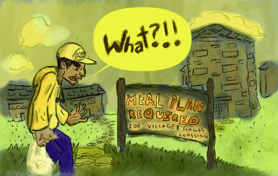 In years past, residents in the apartments at Hawk Crossings and The Village were not required to pay for a meal plan, as each apartment has a kitchen. However, thanks to a decision made in the July 18 board of trustees meetings, this is no longer the case. Starting this year, all apartment residents must purchase a meal plan that is at least $250 per semester.