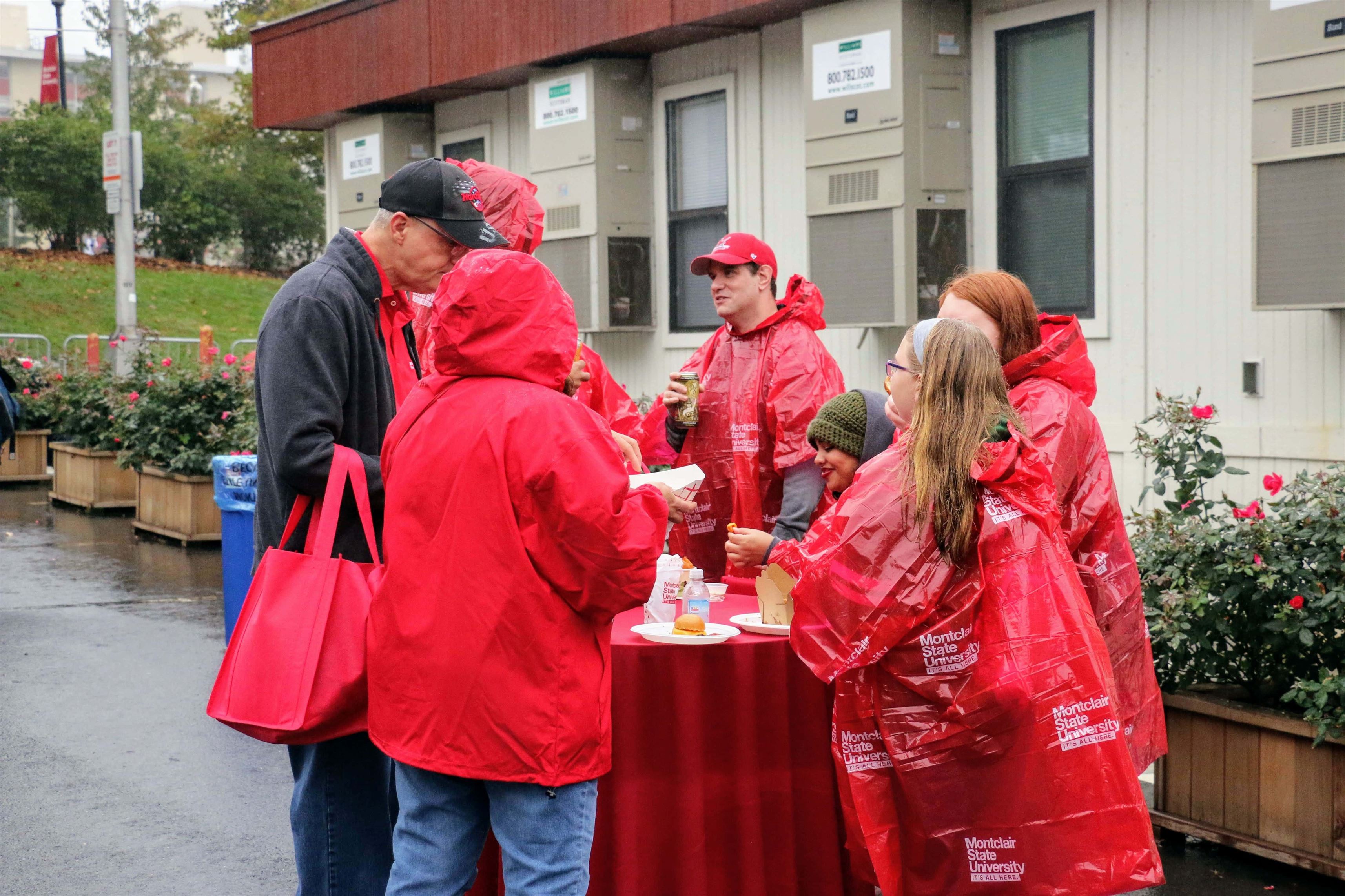 Ponchos were given out to people attending homecoming festivities because of the light rain. Olivia Kearns | The Montclarion