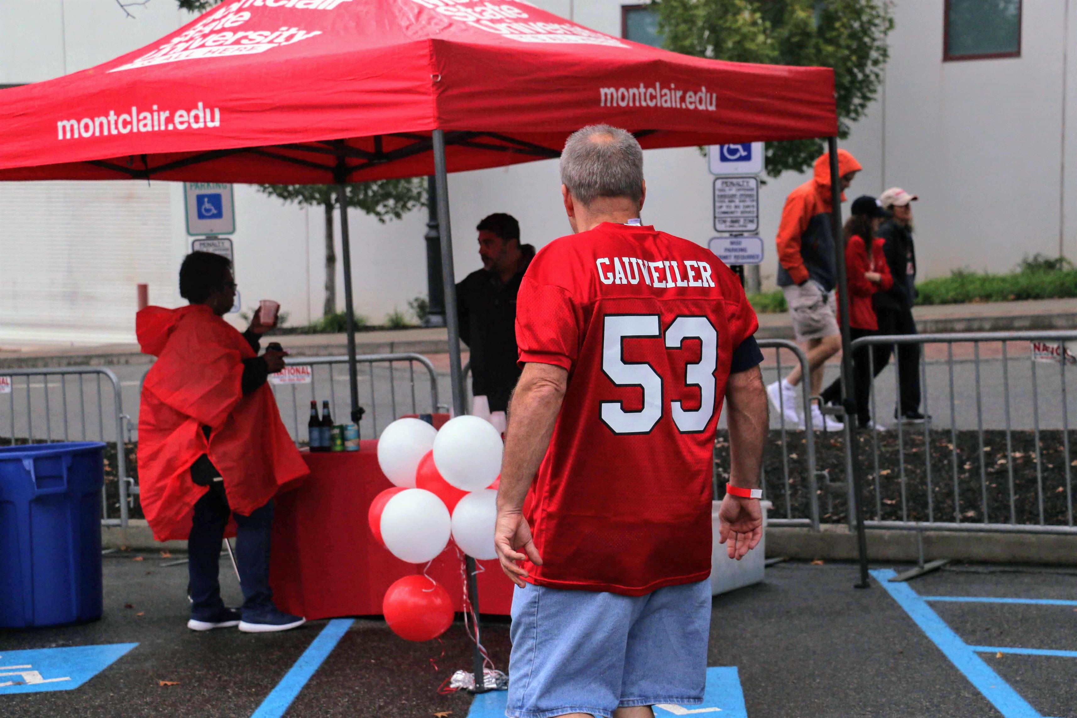 A Montclair State football fan wears linebacker Nick Gauweiler’s jersey at the tailgate. Olivia Kearns | The Montclarion