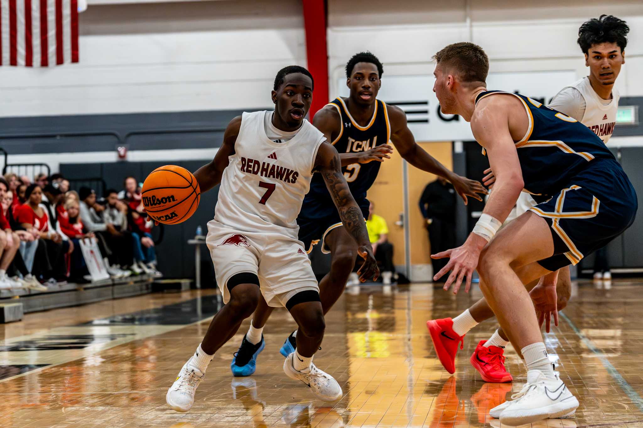 Judge was always telling me [Montclair State] was the place to be," said Red Hawk forward Kevin Beck. "Once I heard him saying that, I felt like it kind of made sense for me to come here too.” Photo courtesy of Montclair State Athletics” align=”aligncenter” id=”attachment_89516″ width=”1707″]
