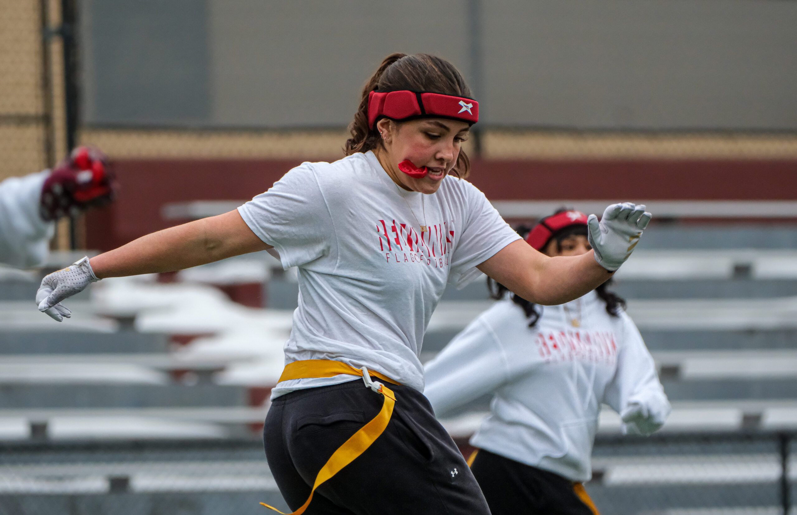 “I felt like I was playing in the backyard with my brother again," said junior Maya Anico about her first time trying flag football. "I felt like I was healing my inner child. And so I knew that I had to do it.” Tim David | The Montclarion